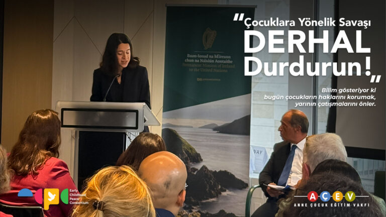 Anne Çocuk Eğitim Vakfı (AÇEV) olarak Birleşmiş Milletler 80. Genel Kurulu kapsamında, kurucularından olduğumuz Erken Çocukluk Barış Konsorsiyumu (ECPC) tarafından İrlanda Birleşmiş Milletler (BM) Daimi Temsilciliği ortaklığında 25 Eylül 2025 tarihinde gerçekleşen “Çocuklara Yönelik Savaşı DERHAL Durdurun!” üst düzey etkinliğinde...