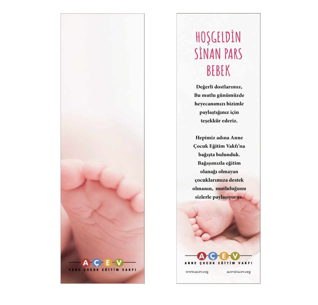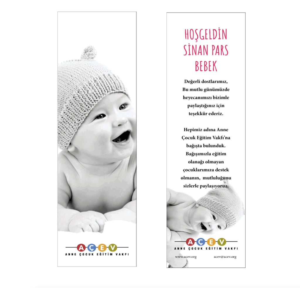 Sertifika, kitap ayracı, magnet tasarımlarınızı AÇEV ile hazırlayabilir, bu heyecanlı gününüzü bağışlarınızla daha anlamlı hale getirebilirsiniz.